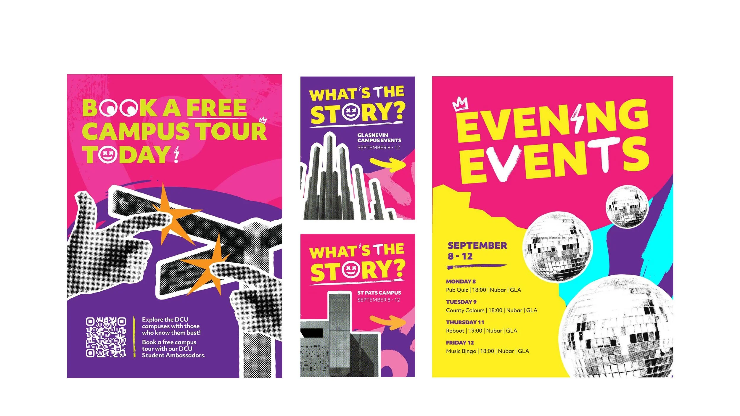 While past orientations prioritised creating a friendly environment within strict brand adherence, conversations with the DCU Students’ Union revealed a clear opportunity to evolve and deliver a more engaging, exciting experience.