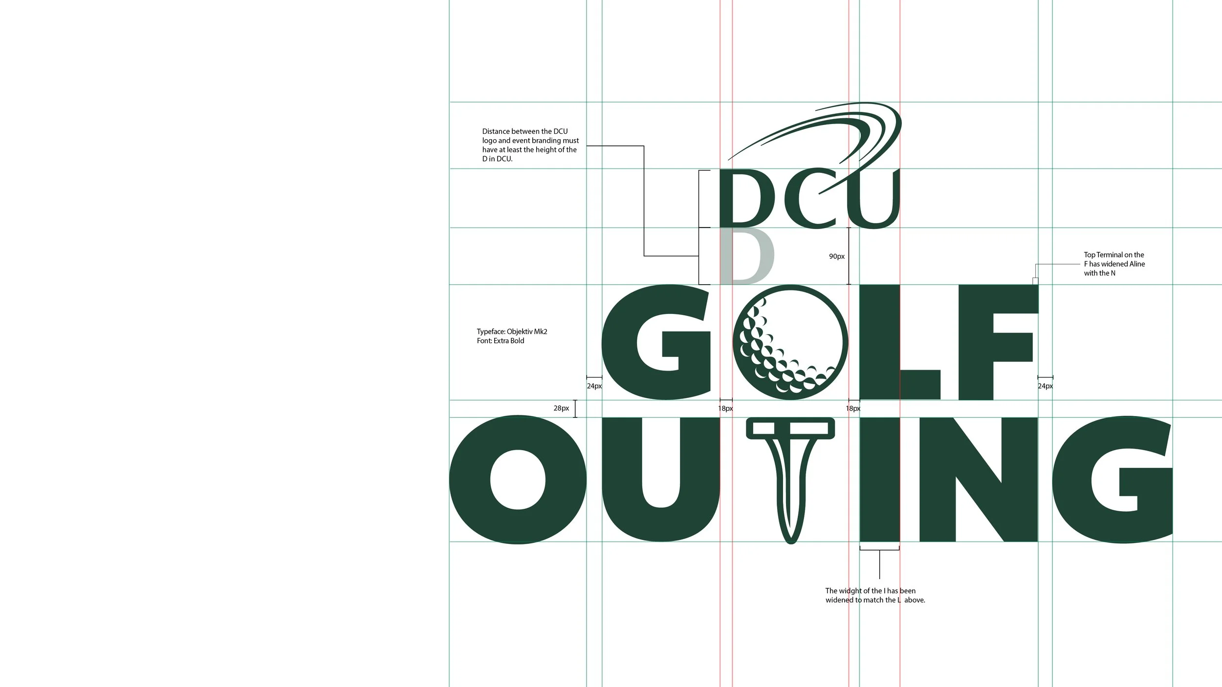 Create a cohesive and strong bran didentity for the DCU Golf Outing that aligns with existing DCU branding guidelines. This identity will be applied to various event branding items to ensure a professional and recognisable presence.