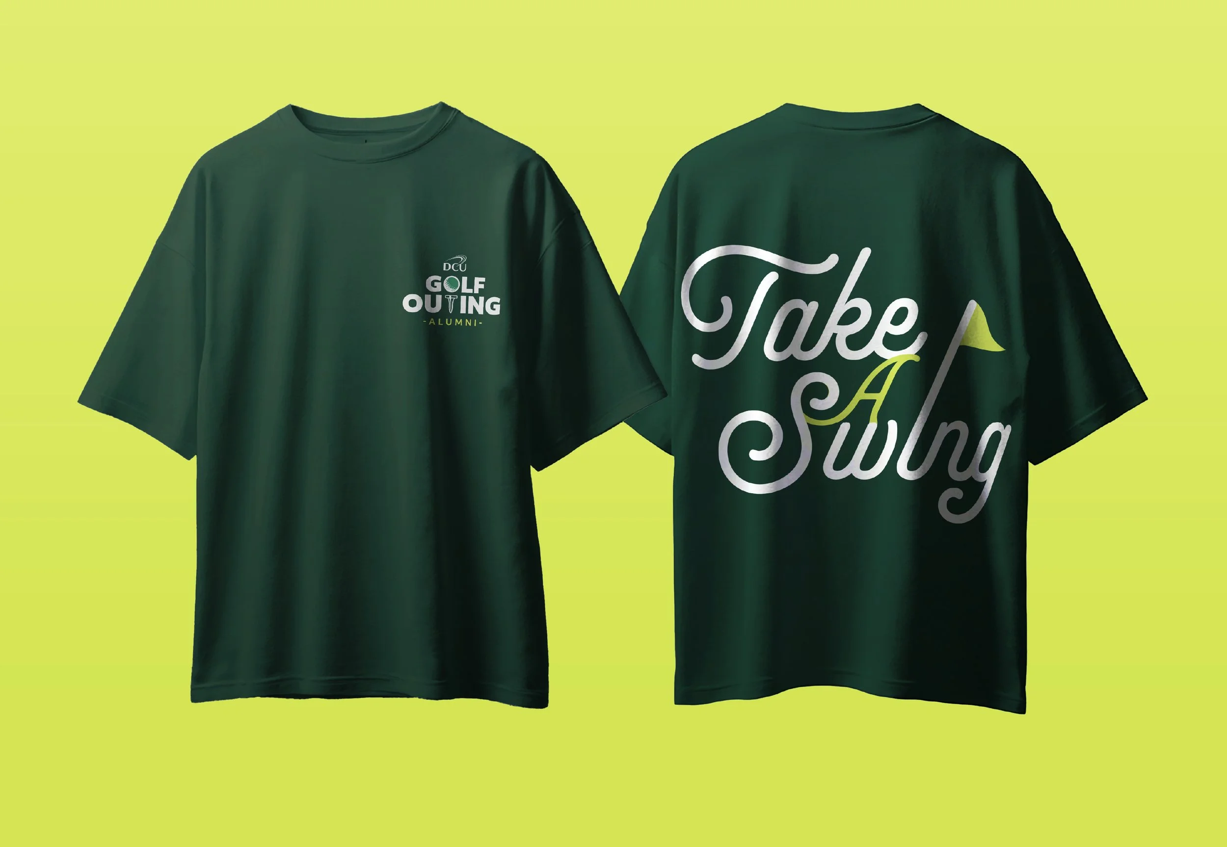 The DCU Golf event's branding was meticulously designed to align with the DCU brand and prominently feature the DCU logo.