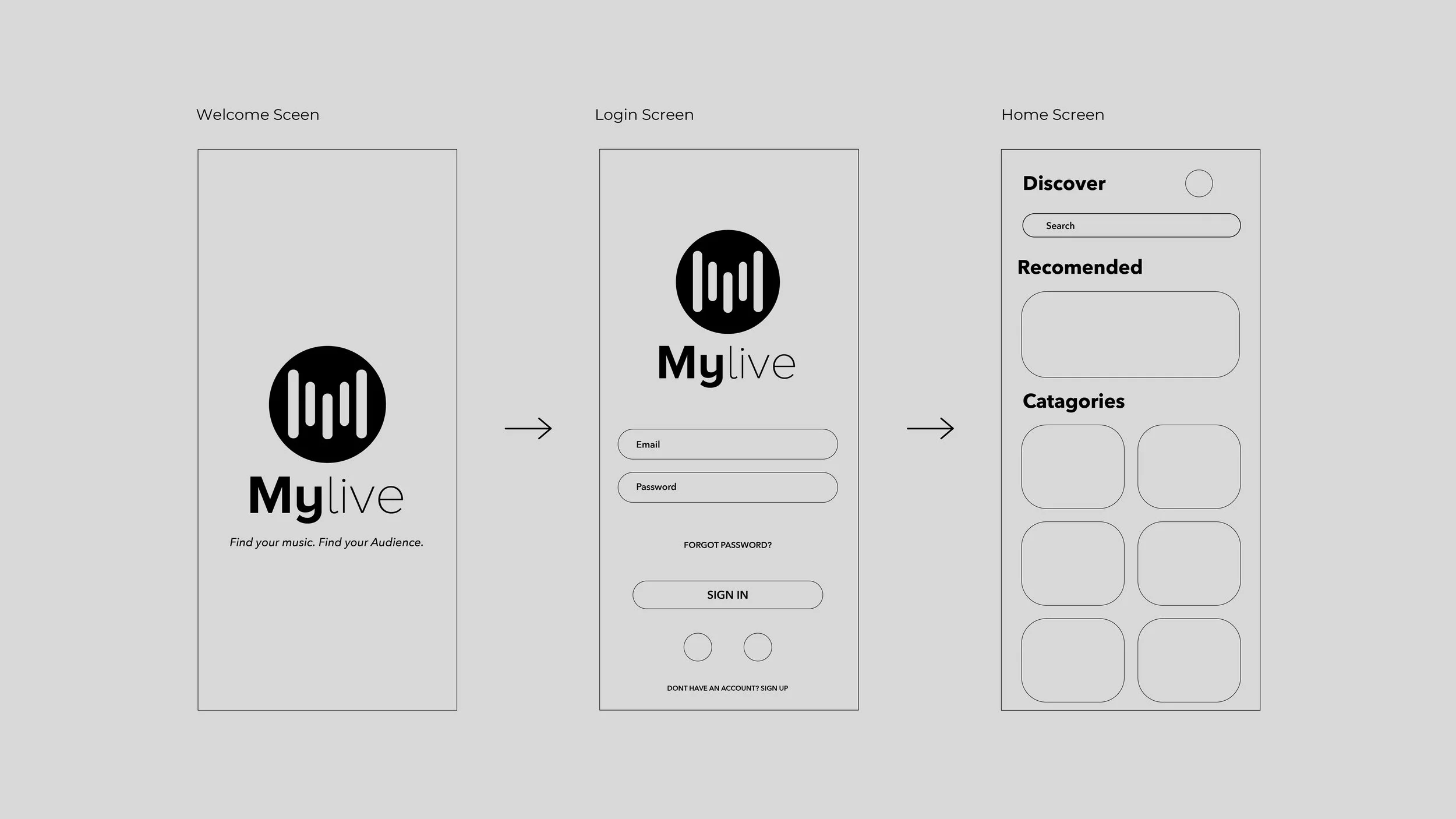 The MyLive identity and wireframe were designed under strict time constraints, with the entire project completed in just over two weeks.