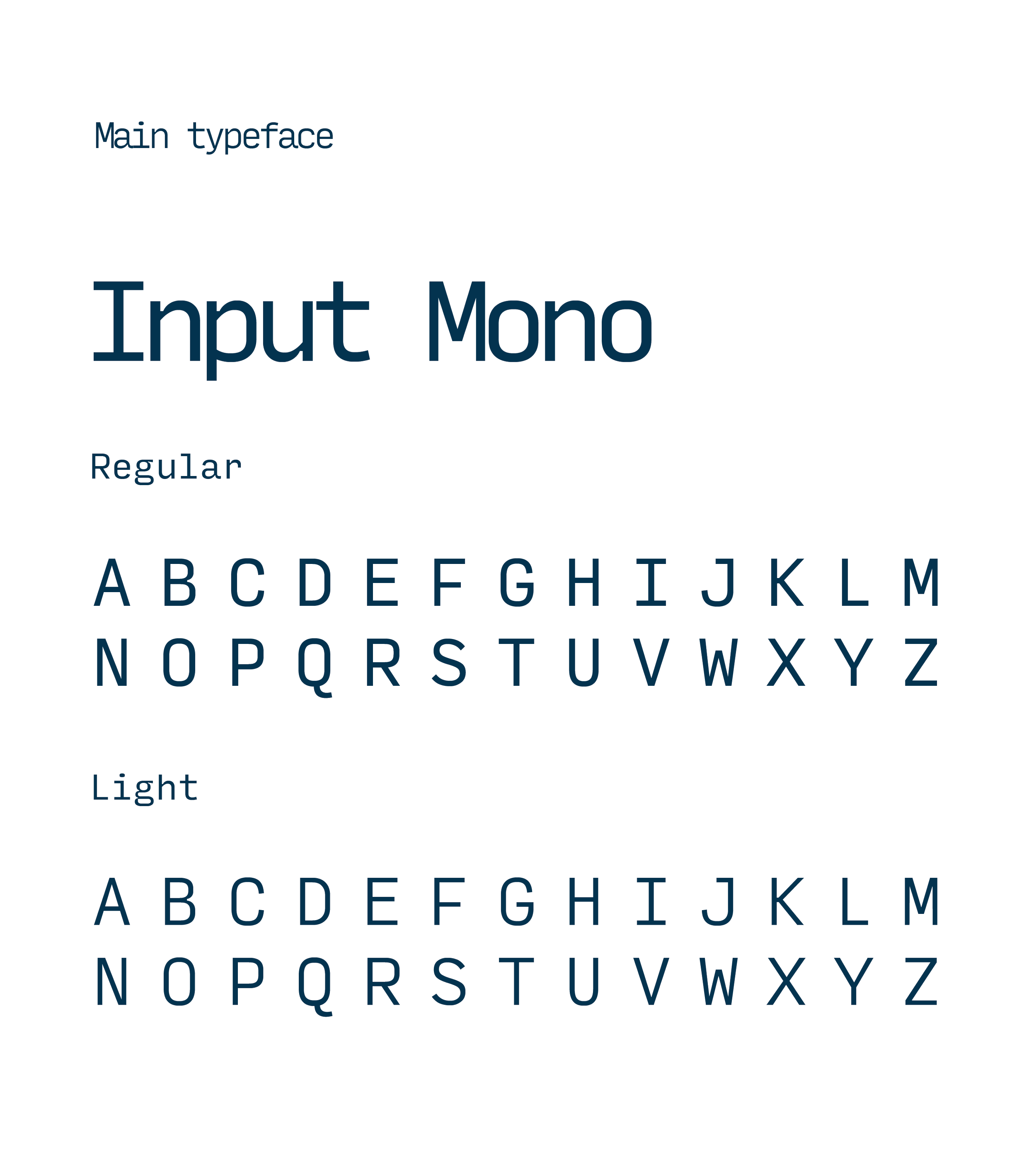 This typeface was chosen for its monospaced style. Its crisp edges and programming aesthetics finds inspiration in early computer consoles but looks towards a typographically rich future, where coding environments overcome technical limitations.