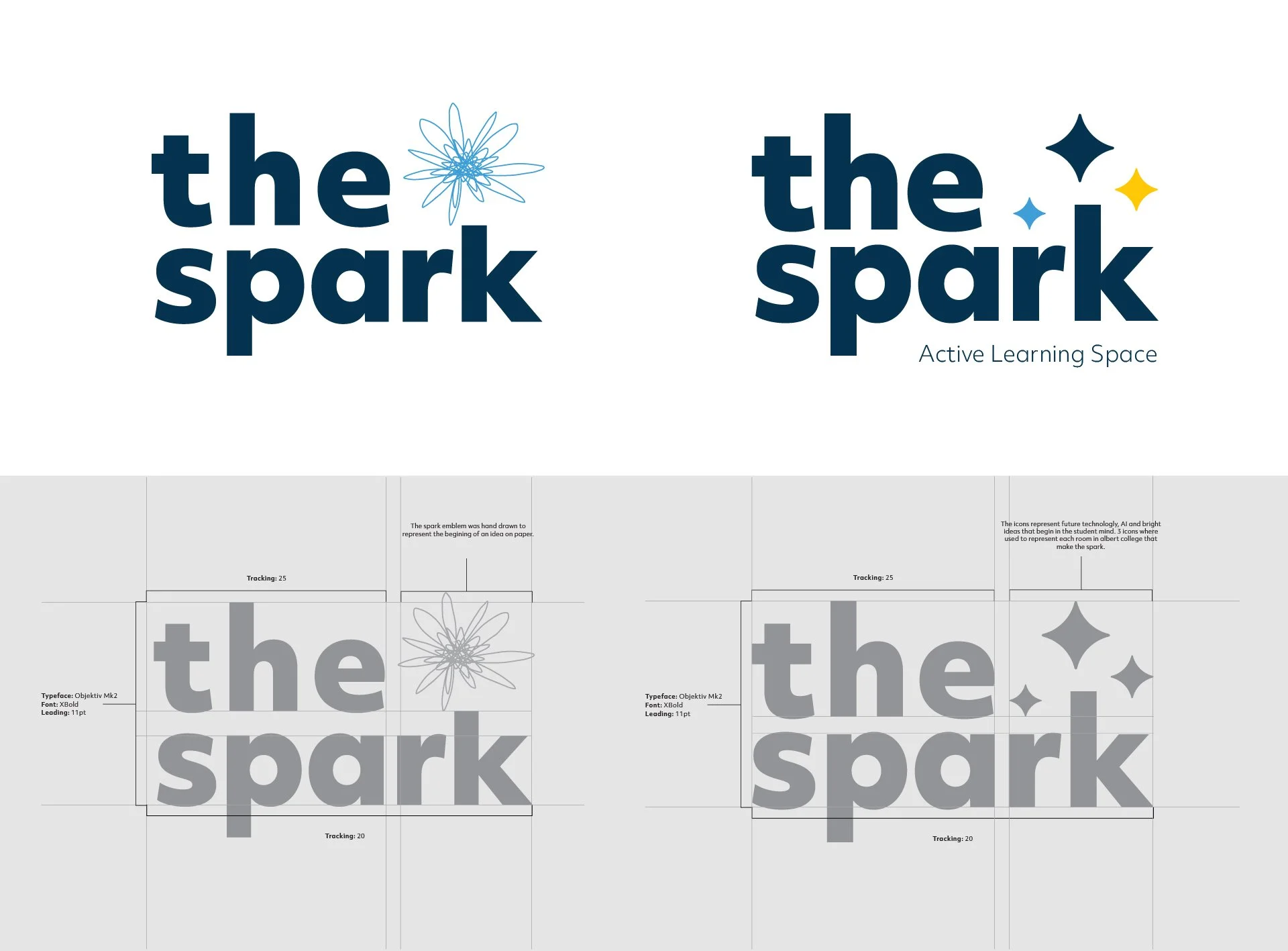 The spark you see alongside the text was hand drawn giving the identity a more artistic look and feel which also represents Growth and Learning.